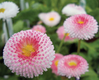 Fleuroselect Award. Double, pomponette-type flowers in shades of rose and white. Compact.